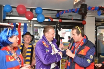 Ook de laatste uren van carnaval tikken we dit jaar af in de, voor de gelegenheid rood-blauw gekleurde, Huiskamer van H32.