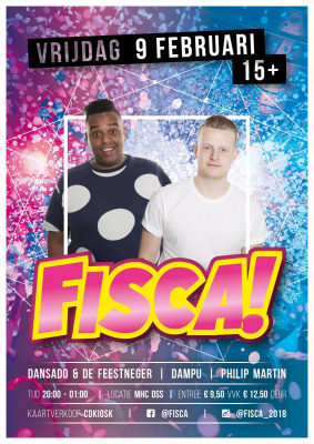 Vrijdag 9 februari is het weer zover: Carnavalsvrijdag, van 20:00 - 01:00 uur Fisca! Inmiddels is het een traditie dat de SCVO op deze avond een feest organiseert voor de jongeren in Oss van 15-18 jaar. Net als vorig jaar wordt het een dikke party in het clubgebouw van MHC. Met Dansado & de Feestneger, Dampu en Philip Martin. Voorverkoop kaarten â €9,50 bij de CD kiosk. Op 9 februari aan de deur €12,50. Volg ons @FISCA