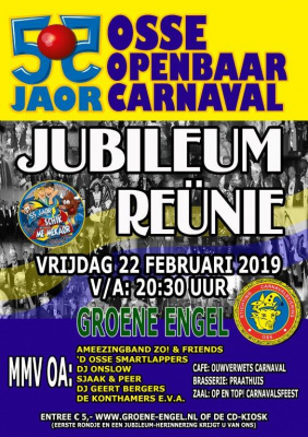 Ter gelegenheid van het 55 jarig bestaan van het Osse openbare carnaval organiseert de Jubileum commissie van de S.C.V.O. een reünie op 22 februari 2019. Iedereen die de afgelopen 55 jaar iets heeft betekent voor het openbare carnaval is deze avond uitgenodigd. Zo zullen ook de Smartlappers, inclusief originele leden van het eerste uur, acte de prèsence geven tijdens dit unieke feest.